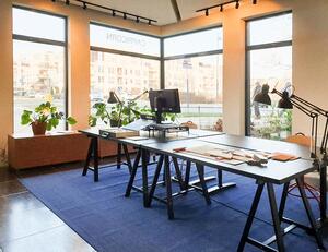 Przestrzeń coworkingowa z przestrzenią warsztatową. Miejsce wyposażone, idealne na mniejsze spotkania.