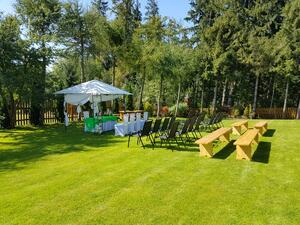 Rustykalna sala z wyjściem na łąkę i altanę, gdzie zorganizujesz wyjątkowe zaślubiny.