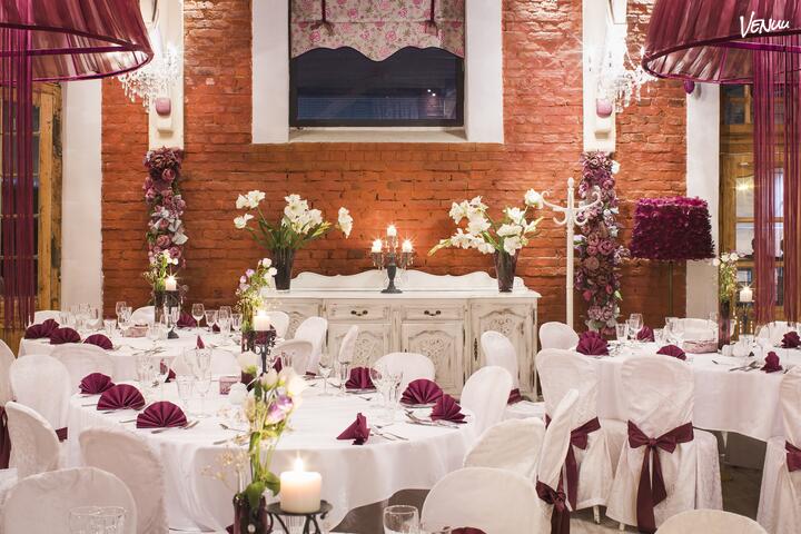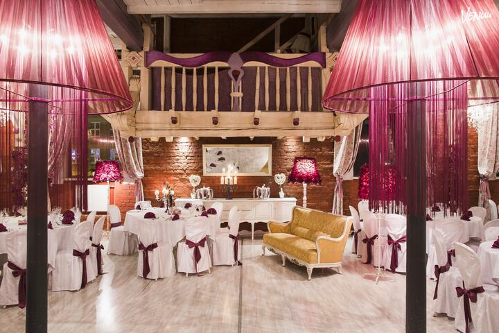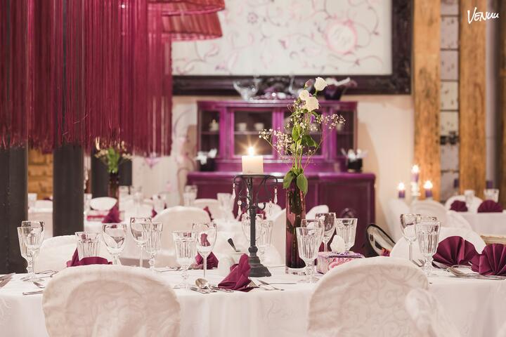 Sala bankietowa, usytuowana na poziomie I, umożliwia zorganizowanie przyjęć weselnych do 150 osób. Sala klimatyzowana.