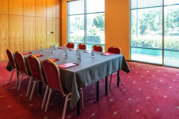 Sala Azalia to idealne miejsce na konferencje i spotkania dla 30 osób. Klimatyzowana, przestronna sala z dostępem do światła dziennego z możliwością całkowitego zaciemnienia. Sala zlokalizowana jest na parterze. Przed salą znajduje się ekran LCD, na którym wyświetlana jest informacja ułatwiająca uczestnikom szkolenia dotarcie do odpowiedniej sali (nazwa i logo).