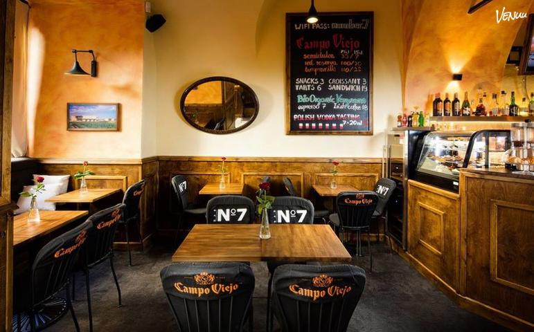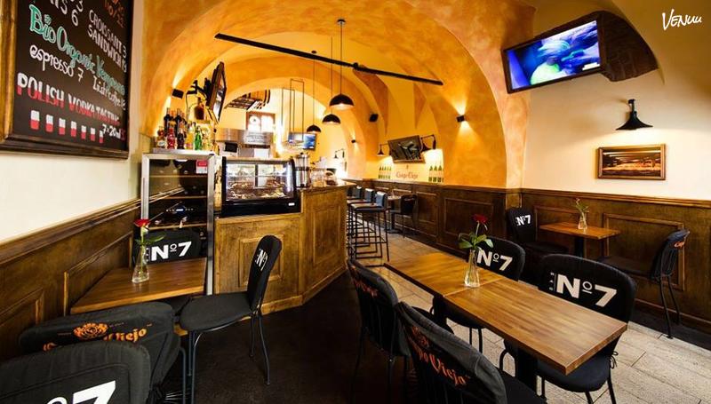 No7 Bar zlokalizowany w samym centrum Krakowa zaprojektowany został z wielką dbałością o każdy szczegół. Całe wnętrze, od stalowych siedzisk, przez metalowy, owalny bar, po designerskie lampy, stanowi niepowtarzalną przestrzeń w której przebywanie jest czystą przyjemnością. Znajdujący się na głównej płycie rynku, niewielki bar kusi pięknym designem, niepowtarzalnymi koktajlami i szampańską atmosferą.