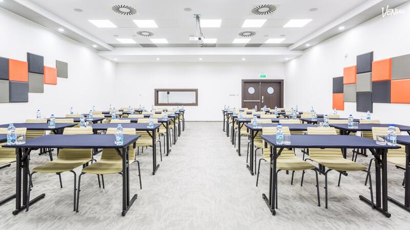 Sala A to jedna z naszych sal konferencyjnych, która pomieści nawet do 120 osób w układzie teatralnym. Dla wygody gości, w bezpośrednim sąsiedztwie sali znajduje się szatnia.