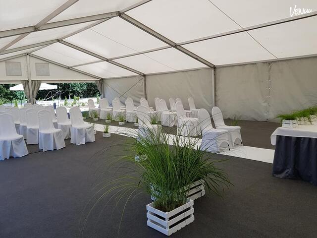 Namiot Garden Place to specjalistyczny, klimatyzowany namiot przeznaczony do organizacji wesel w plenerze. Z powodzeniem pomieści do 150 osób. Doskonały wybór na ślub i wesele na łonie natury lub imprezę do białego rana.