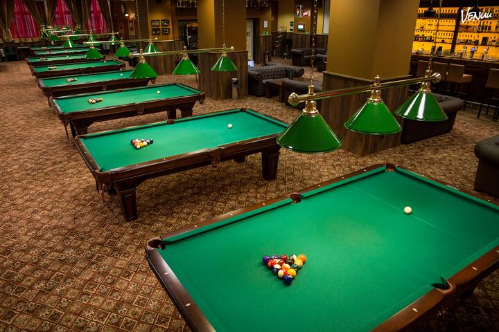 Dysponujemy 17 profesjonalnymi stołami do gry, które posiadają certyfikaty przyznawane przez Światowe Federacje Bilardowe. Natomiast wszystkie kije dostępne w naszym klubie wykonane są z litego klonu kanadyjskiego, co powoduje, że są proste i bardzo trwałe na uszkodzenia.