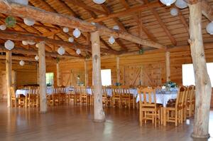 Sala na wesele w chacie, zlokalizowanej w Miłowie, na pomorzu. Urokliwe miejsce na kompleksową organizację ślubu.