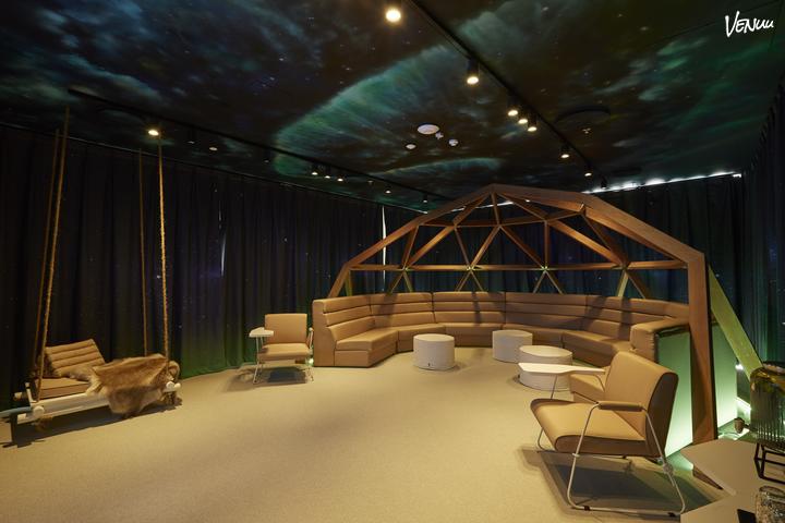 Nordlysene er et spektakulært syn og en unik nordisk attraktion, der inspirerer alle, som ser dem. Dette lokale er hyggeligt og varmt selv uden brug af bålsted, lokalet er centreret omkring igloen og dekoreret med kunstige rensdyrskind. Derfor er dette lokale perfekt til de lange kundesamtaler eller intime cocktailfester. Du kan endda sætte tingene i bevægelse og få et andet perspektiv på sagen med en svingtur på gyngen. Uanset hvad vil dette lokale lyse vejen for din virksomhed til alle arrangementer.